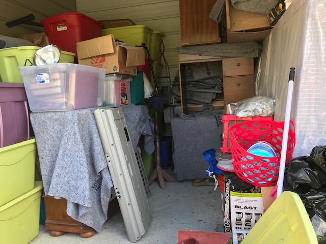 Storage building….my Trash and Treasures live here. For the past 3 years, I have constantly carried this fact as a Burden….Last week, I walked into the damp unit and thanked God the flood waters did not intrude. I gave thanks for each item in the building. I am aware each day my assignment is to delete an item from the building. That means 7 items will be deleted this week. Clothing, no matter how many pieces counts as one item.